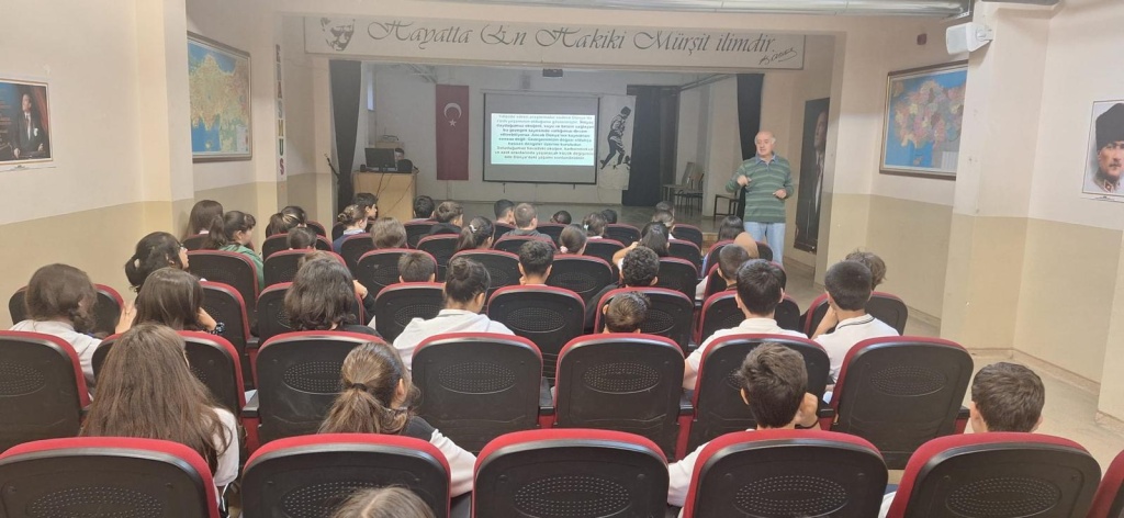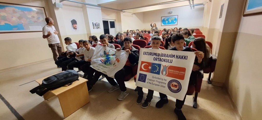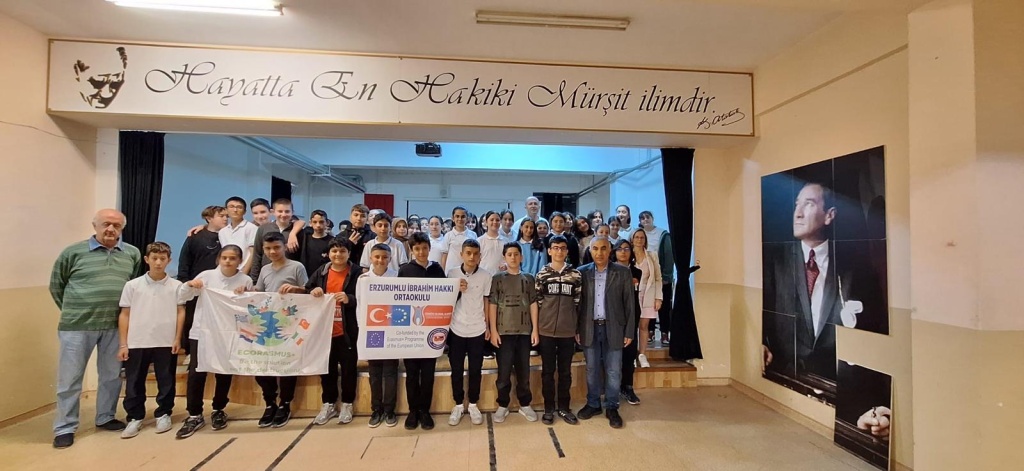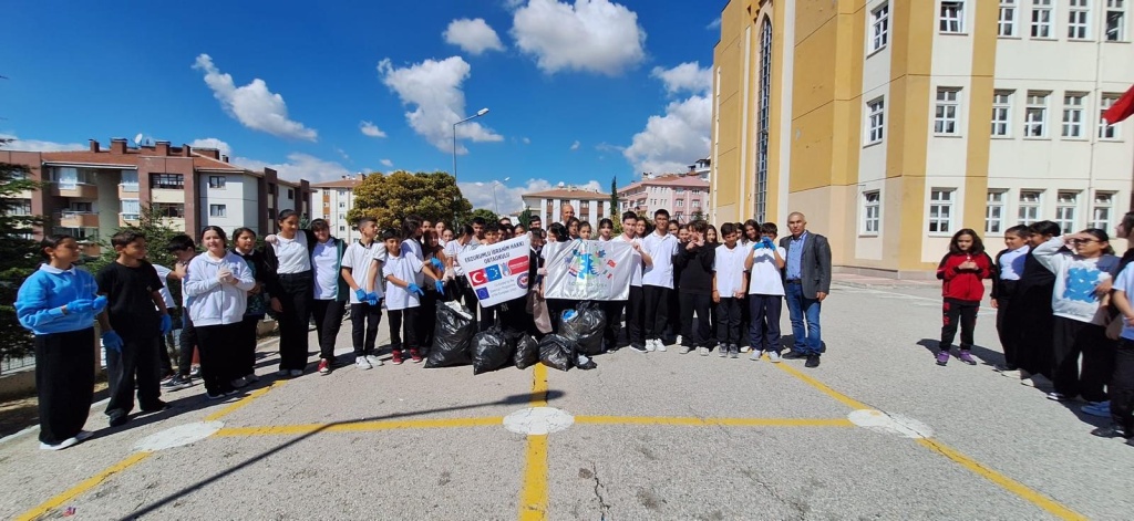 Okulumuz AB ERASMUS+ "Ecorasmus+" projesi Hırvatistan ziyareti öncesi EKOLOJİ KULÜBÜ çalışmaları kapsamında Etimesgut TEMA VAKFI temsilcisi Ali Gökmen okulumuz 7.sınıf öğrencilerine "Ekolojik davranış nasılsın olmalı" konusunda seminer vermiştir.Seminer sonrasında öğrencilerimizle beraber "okul çevre temizliği" etkinliği de yapılmış olup TEMA VAKFI temsilcisi Ali Gökmen'e,proje ekibine ve tüm öğrencilerimize teşekkür ederiz.