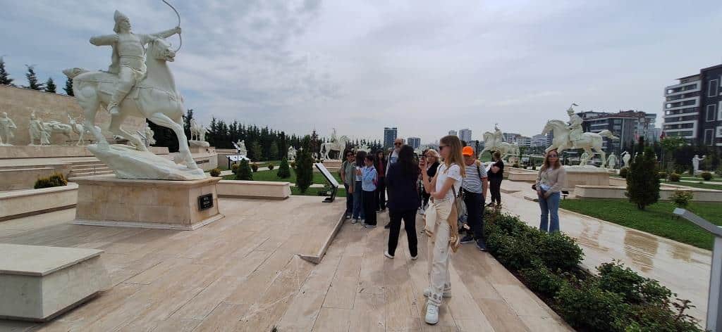 AB Erasmus+ KA210 sch “ECORASMUS+” isimli projemizin toplantısı 04-10 Mayıs 2025 tarihleri arasında okulumuzda yapılmıştır. Proje toplantısına Yunanistan’ın PROTYPO GYMNASIO AGION ANARGYRON okulundan, İtalya’nın IC LODI TERZO okulundan ve Hırvatistan’ın OŠ Vrgorac okulundan öğretmen ve öğrenciler katılmışlardır. Bir hafta süren toplantı boyunca velilerimiz büyük özveride bulunarak misafir öğrencilerimize ev sahipliği yapmışlardır. Pazartesi günü proje ortakları Karadeniz halkoyunu ve anasınıfı öğrencilerimizin gösterileri ile karşılanmışlardır. Öğrencilerimiz sunumları ile ile, ülkemizi, okulumuzu, eğitim sistemimizi ve ekoloji kulübünün yaptıkları çalışmaları anlatmışlardır. Ortak okullarımız da ekoloji kulüplerinin yaptıkları çalışmaları paylaşmışlardır. Tüm proje ekibi Satuk Buğra Han Türk İslam Sanatları Merkezinde geleneksel sanatımız EBRU çalışmalarına katılmış olup eğitim merkezini çok beğenmişlerdir. Eskişehir ve Beypazarı kültürel gezileri ile ülkemiz tarihi yapılarını, gelenek ve göreneklerini yakından tanıma fırsatı bulmuşlardır. Eskişehir’de Odun pazarı evleri, Kurşunlu Külliyesi, Atlihan El sanatları Çarşısı, Yılmaz Büyükerşen Balmumu Heykeller Müzesi ve Sazova Bilim Kültür ve Sanat Parkı ziyaret edilmiştir. Beypazarı’nda ise Yaşayan Müzede geleneksel etkinlikler düzenlenmiş olup müze ziyareti sonrası Sultan Alaaddin Camii ziyaret edilmiştir. Alaaddin sokakda misafirlerimiz Türk kültür ve sanatını temsil eden ürünleri yakından görmüşlerdir. Yöresel ürünlerden alışveriş yaparak bölgemize hayran kalmışlardır. Ankara turunda ise Etimesgut Türk Tarih Müzesi ve Parkı, Altınköy Açık Hava Müzesi ve Ankara Kalesi ziyaret edilmiştir. Cuma günü ise okulumuz bahçesinde proje fidan dikme etkinliği yapılmıştır etkinlik sonrası sertifika töreni yapılmış olup ortaklar ülkemizden ayrılmaya başlamışlardır. Okulumuz bu büyük organizasyonun altından elbirliği ile başarıyla kalkmış olup proje koordinatörü İngilizce öğretmeni Ayhan Yavuz’a ,Müzik öğretmeni Ünal Şen’e ve Fen Bilimleri öğretmeni Ümit Sevim’e teşekkür eder başarılarının devamını dileriz.